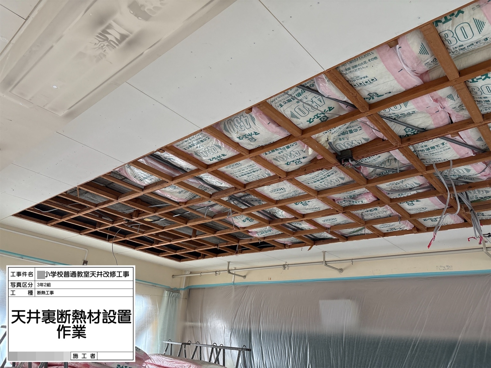 このたび、杉本建装工業は、堺市内の小学校にて三校目となる校舎天井断熱工事を施工いたしました。