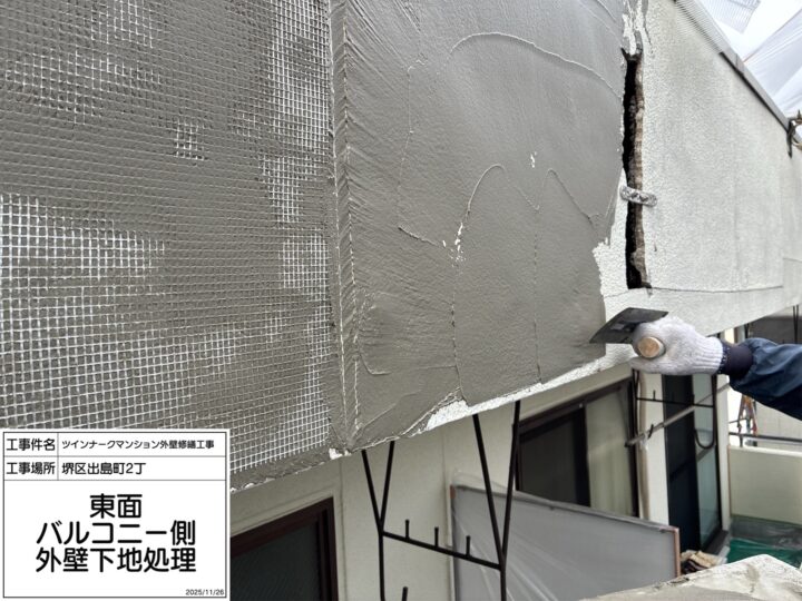 | 下地左官 | モルタル左官 メッシュシート入り |